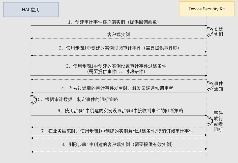 - 在开发准备过程中,需要申请权限:ohos.permission.kernel.AUTH_AUDIT_EVENT。