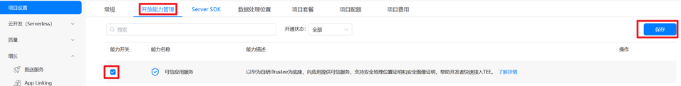 可信应用服务:勾选“可信应用服务”并点击“保存”,接入“可信应用服务”。