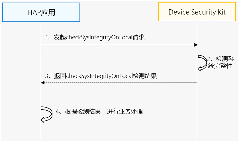 - 开发者应用调用checkSysIntegrityOnLocal接口,发起本地系统完整性检测请求。