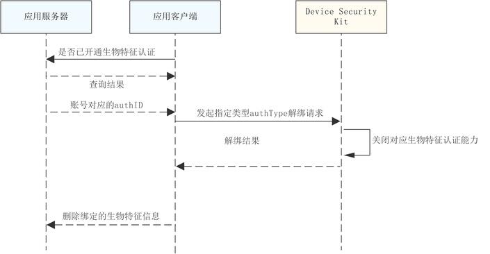 首先开发者需要在服务器查询对应账户是否已开通对应生物特征认证能力,在确认开通后方可发起解绑指定生物类型认证能力请求。