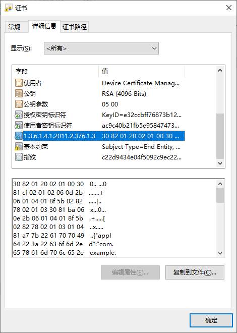 //从密钥证明证书中获取 “密钥证明扩展域段”