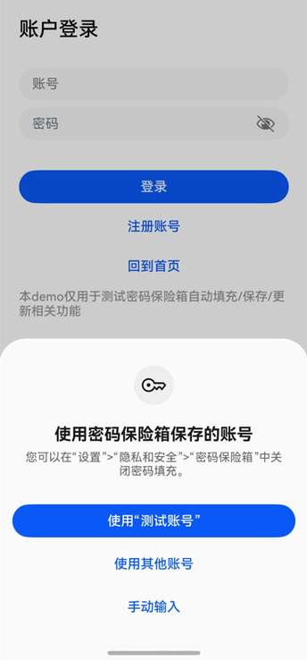 密码保险箱可以在登录或修改密码时,自动填充已保存的用户名和密码。