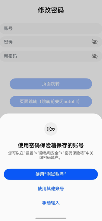Button('页面跳转(跳转前关闭autofill)')