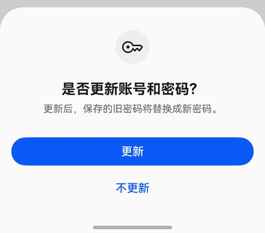 应用界面触发账号密码自动保存时,若密码保险箱中已存在同应用下与本次使用账号相同的账号,则弹出密码更新提示框,用户点击更新按钮,即可更新密码保险箱内对应账号的密码。