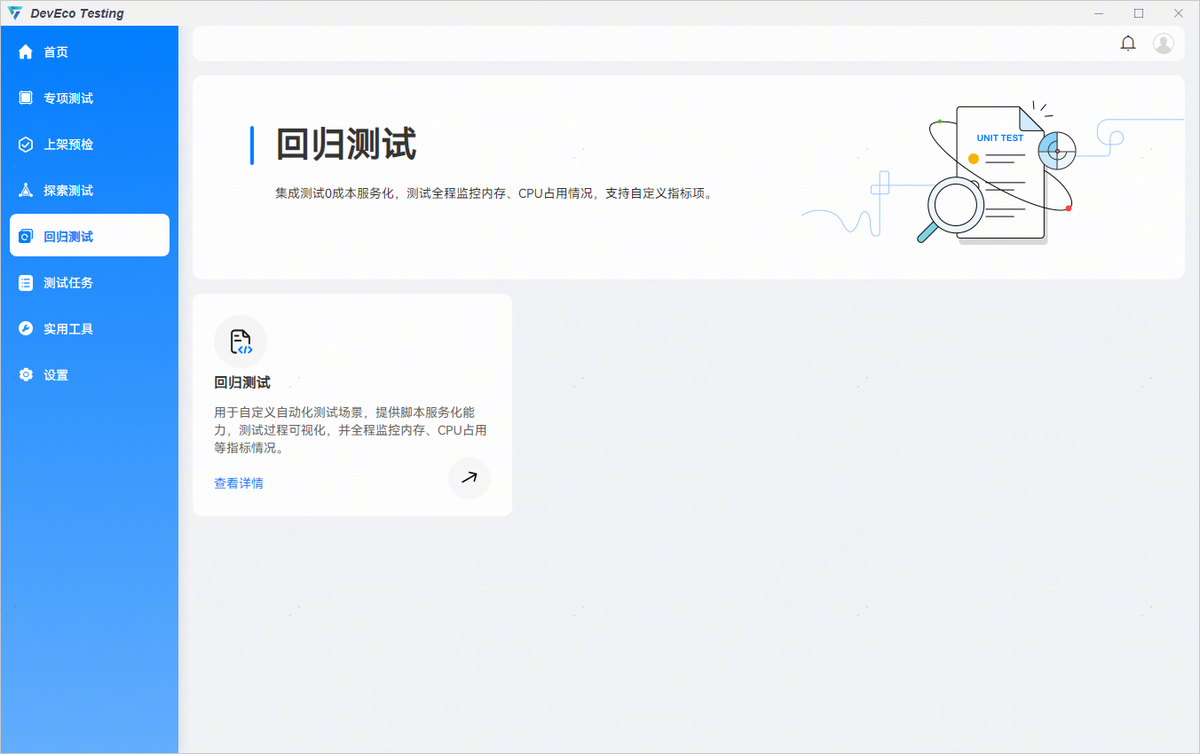 更多测试服务详情,请前往DevEco Testing客户端 -> 回归测试 -> 回归测试 -> 任务创建页 -> 测试指南中查询。