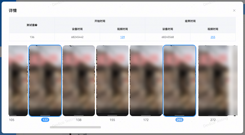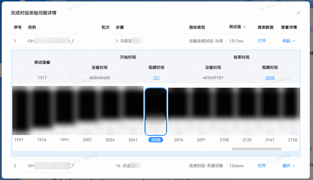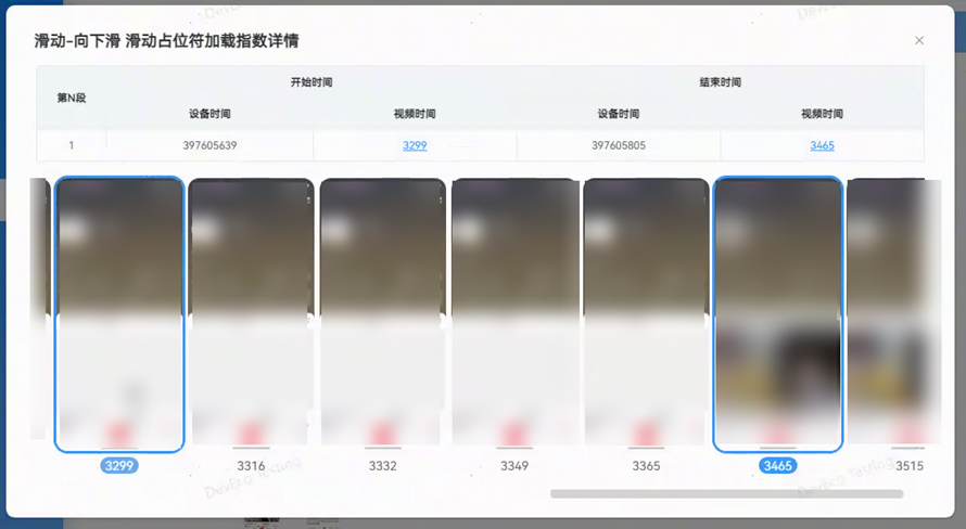 - 查看详情:点击展开按钮,呈现该操作的帧图片集,点击视频时间数字,能直接定位到具体的图片。