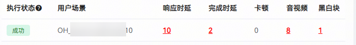 性能基础质量测试提供了响应时延、完成时延、卡顿、音视频和黑白块五大类性能指标的检测能力,具体如下: