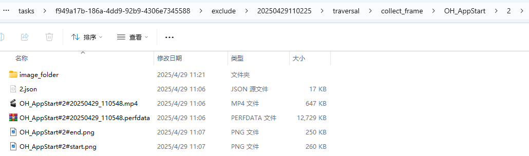 - 维测数据:点击打开按钮,自动打开该操作的数据文件夹,汇总当前操作的trace、视频、图片等维测数据,协助用户进行问题定位。