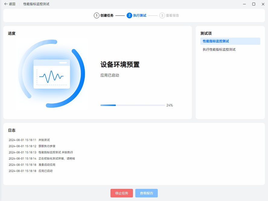 创建任务后,将会跳转到执行页,进入测试环境初始化阶段。待测试环境初始化完成,待测应用被启动。