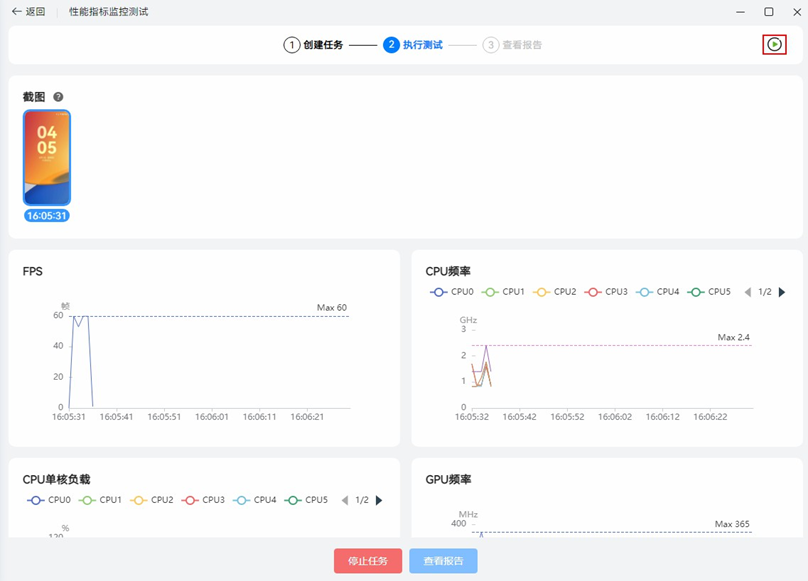 参数配置完成后,点击创建任务按钮开始测试。