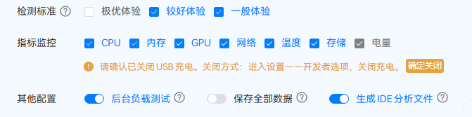 自动化遍历执行过程中,被测设备的系统资源指标项采集,当前支持采集CPU、内存、温度、网络、GPU、存储和电量,固定采集CPU和内存,用户自行选择是否采集其他指标项。