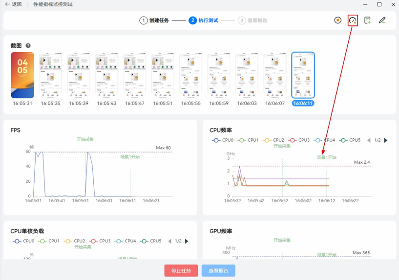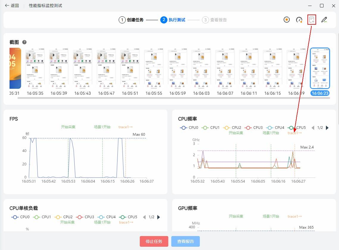 指标数据:包括 FPS、设备 CPU/GPU 的频率、负载监控等信息。