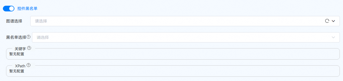 控件黑名单通过指定控件的关键字(控件感知语义或layout中控件text属性值)和控件Xpath进行正则匹配识别黑名单控件;黑名单控件在遍历中不会进行操作;屏蔽的黑名单控件在遍历过程中会在应用页面中置灰。