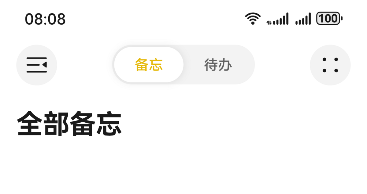 @Entry@Componentstruct Index {@Provide('pageInfos') pageInfos: NavPathStack = new NavPathStack();scroller: Scroller = new Scroller();private arr: number[] = [0, 1, 2, 3, 4, 5, 6, 7, 8, 9, 10, 11, 12, 13, 14, 15, 16, 17, 18, 19, 20];@State tabOptions: SegmentButtonOptions = SegmentButtonOptions.tab({buttons: [{ text: '备忘' }, { text: '待办' }] as ItemRestriction<SegmentButtonTextItem>,selectedFontColor: '#ffe6ba0b',selectedBackgroundColor: Color.White,textPadding: {top: 5,right: 5,bottom: 5,left: 5},});@State tabSelectedIndexes: number[] = [0];@BuilderstackBuilder() {Row() {Flex({ justifyContent: FlexAlign.SpaceBetween }) {Button() {SymbolGlyph($r('sys.symbol.open_sidebar')).fontColor([$r('sys.color.icon_primary')]).fontSize(24).width(24).height(24)}.width(40).height(40).backgroundColor($r('sys.color.ohos_id_color_button_normal'))SegmentButton({options: this.tabOptions,selectedIndexes: $tabSelectedIndexes}).width(150)Button() {SymbolGlyph($r('sys.symbol.dot_grid_2x2')).fontColor([$r('sys.color.icon_primary')]).fontSize(24).width(24).height(24)}.backgroundColor($r('sys.color.ohos_id_color_button_normal')).width(40).height(40)}.margin({ left: 16, right: 16 })}.width('100%')}build() {HdsNavigation(this.pageInfos) { // 创建HdsNavigation组件Row() {Text('全部备忘').fontSize(26).fontWeight(FontWeight.Bold).layoutWeight(1).onClick(() => {this.pageInfos.pushPath({ name: 'pageOne' });})}.margin({ left: 16, top: 16 }).justifyContent(FlexAlign.Start)}.titleBar({enableComponentSafeArea: true, // 将标题栏设置为组件级安全区,内容区可避让标题栏content: {title: { mainTitle: '' },// 设置HdsNavigation 自定义标题区stackBuilder: (): void => this.stackBuilder(),}}).hideBackButton(true).bindToScrollable([this.scroller]) // 绑定导航组件和可滚动容器组件.titleMode(HdsNavigationTitleMode.MINI)}} -