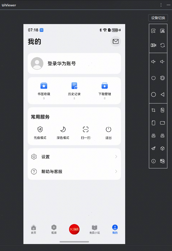 - ****设备屏幕显示区域:****显示当前设备的实时屏幕画面。在投屏模式下,可通过鼠标点击或滑动该界面来操作设备。