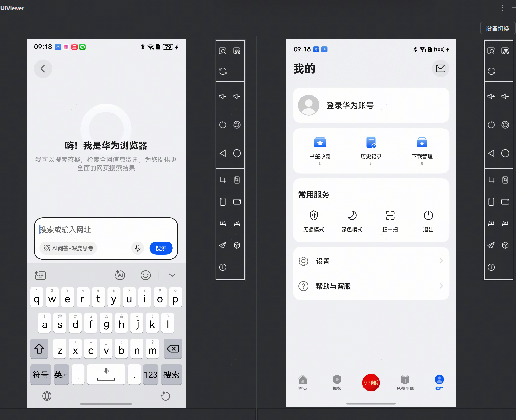 | 5 | 切换横屏 | 将设备屏幕方向设置为横屏(Landscape)状态。点击该按钮后,设备将旋转显示方向至横屏模式。此操作会向设备发送系统指令,实际效果取决于当前应用是否支持方向控制。 | |