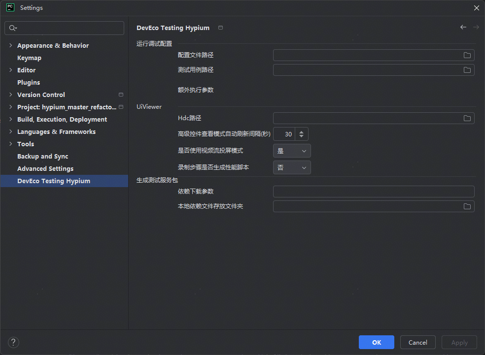 在6.0及以后的版本中,DevEco Testing Hypium插件在下载包中的名称由“DevEcoTesting-Hypium”修改为“hypium-pycharm-plugin”。