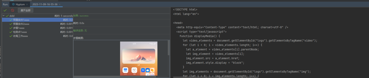 - Hypium能够为执行的用例生成详细的用例执行报告,并且自动记录设备日志以及执行步骤截图,为用户提供高效和专业的测试用例执行和结果分析体验。