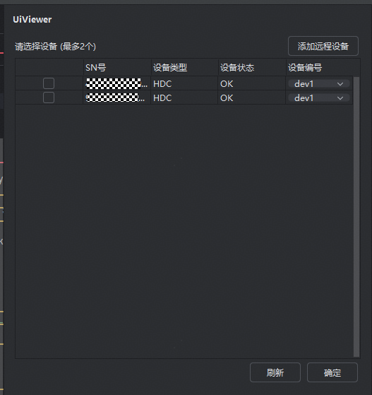 | 5 | 添加远程设备 | 点击后会弹出远程设备IP添加面板,可以在此填入远程设备所在电脑的IP和hdc端口,以此来发现远程电脑上所连接的hdc设备。 | |