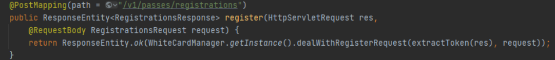 设备认证对应类中的register方法,通过此方法进行设备认证。
