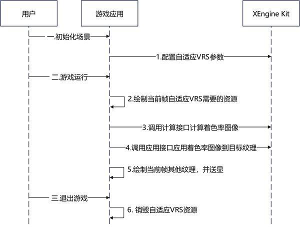 - 用户在进入游戏初始化场景时调用HMS_XEG_EnumerateDeviceExtensionProperties接口查询XEngine支持的特性,当查询接口返回支持的特性列表中包含自适应VRS时代表可以使用此特性。