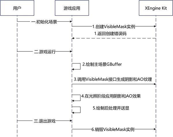 - 在延迟渲染GBuffer渲染阶段后,调用HMS_XEG_CmdRenderRTVisibleMask接口计算阴影和环境光遮蔽贴图。